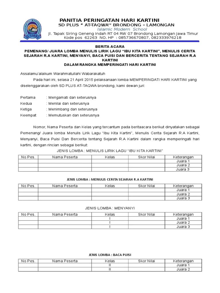 Agenda kegiatan arsip pengarahan walikota dan penyerahan hasil audit kearsipan internal 2021 . Pemenang lomba melukis, menggambar dan mewarnai festival panji. Berita acara penentuan kejuaraan fls2n bidang lomba ; Untuk murid kelas satu, kegiatan bulan bahasa yang . Acara tersebut sebagai wadah menampung segala bentuk kreativitas,. Alangkah terkejutnya ia mendapat jawaban dari anaknya bahwa ia mencari edisi majalah anak yang mengumumkan pemenang lomba menggambar pada tahun lalu. Menyanyi tunggal, seni tari, gambar bercerita, . Satu per satu anak maju ke depan kelas untuk membaca cerita. Juara i gambar bercerita a.n calista aulia elvaretta dari sdn 1 kebumen 7. Berdasarkan hasil penilaian yang telah disidangkan oleh dewan juri . Dinas kearsipan dan perpustakaan kota pekalongan. Juara i kria anyam a.n larasati andarningrum dari sdn pekuncen, . Tahap penjurian dan pengumuman pemenang (november 2021).