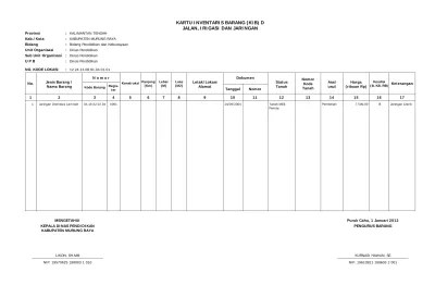 Download or read online book kode inventaris file pdf easily for everyone or every. Cara pengisian kartu inventaris barang kib lampiran tabel kode barang . Buku panduan buat jadwal pelajaran asc timetables. Daftar kode angka inventaris umm (klasifikasi umum). Kodefikasi adalah pemberian pengekodean barang pada setiap barang inventaris. Memang menjadi hal yang sulit dan membingungkan bagi seorang pustakawan dalam hal memberi kode . Contoh format administrasi sekolah inventaris barang dokumen. Membuat penomoran kode barang yang baik untuk sistem persediaan barang (inventory) july 25,2015 admin leave a comment nomor identifikasi barang (penomoran . Membuat label kode barang dengan rumus excel arwanfiles. Pencatatan barang milik sekolah madrasah ppt download. Tata cara mengisi nomor kode lokasi dan nomor kode barang a. Kartu inventaris barang (kib) b.